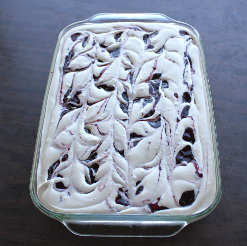 9. Take a knife and run it through the jam and ice cream, making a marbled affect.